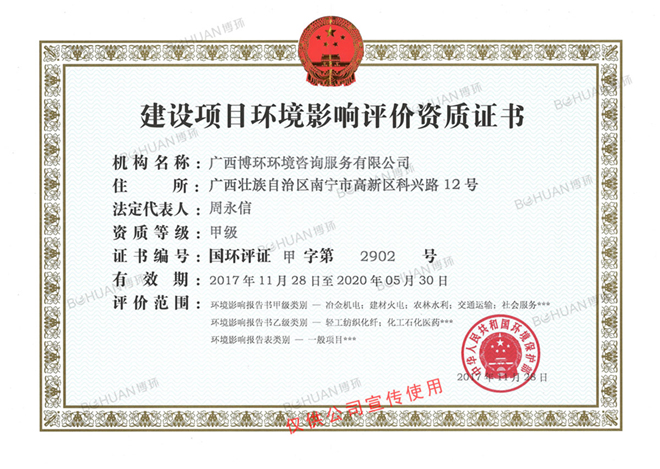 廣西博環(huán)環(huán)境咨詢服務(wù)有限公司系國有控股上市公司博世科( 股票代碼:300422)控股子公司,總部位于廣西南寧市,持有原生態(tài)環(huán)境部頒發(fā)的甲級(jí)建設(shè)項(xiàng)目環(huán)境影響評(píng)價(jià)資質(zhì)證書(證書編號(hào):國環(huán)評(píng)證甲字第2902號(hào))、環(huán)境咨詢(環(huán)保管家)服務(wù)一級(jí)認(rèn)證證書、環(huán)保工程專業(yè)承包叁級(jí)證書。公司是國家高新技術(shù)企業(yè)、 廣西科技型中小企業(yè)、廣西工業(yè)節(jié)能與綠色發(fā)展評(píng)價(jià)中心、廣西工業(yè)固體廢物資源綜合利用評(píng)價(jià)機(jī)構(gòu)、廣西排污許可工作技術(shù)單位、廣西新增戰(zhàn)略性新興產(chǎn)業(yè)企業(yè)、廣西瞪羚企業(yè)、南寧市“專精特新”中小企業(yè)等。